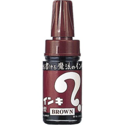 工事に、学校に、ポスター書きに、どんなものにもよく書ける、油性マーカーの定番。経済的で、省資源にも貢献するインキ補充方式。分別収集に容易な構造。進化を続ける、ロングセラー”魔法のインク”。●インク色:茶●太字●角芯(平芯)●筆記線幅:1mm/5×8mm●インキ:油性染料●インキ補充式●ペン先交換式●軸材質:ガラス●商品呼称:マジックインキ大型●包装形態:紙箱入