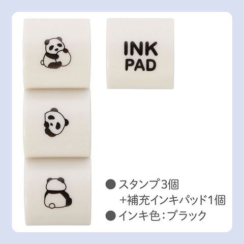 【1000円以上お買い上げで送料無料♪】浸透印 nototo10 ノトトテン 専用スタンプ パンダ 3個入 補充インキパッド付 ブラック/油性 手帳 シャチハタ - メール便発送