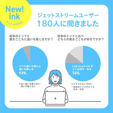 “かろやか”なインク『JETSTREAM Lite touch ink (ジェットストリーム ライトタッチインク)』搭載モデルです。
