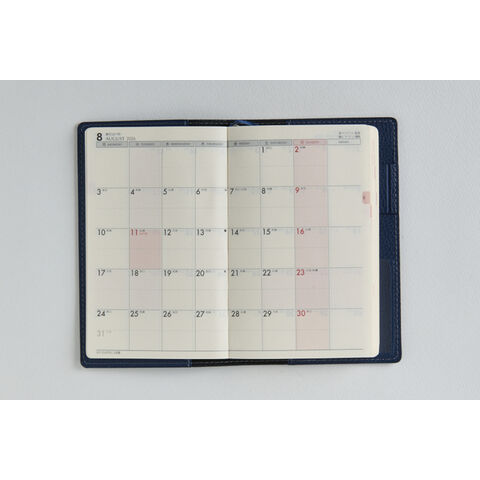 カバーは、高級感がある皮革調で、定番の色でも深みのある色から爽やかな色までさまざま。使用シーンなどの好みに合わせて選べる、豊富なカラーバリエーションをご用意しています。カバーのステッチ糸も、カバー色に合わせて選び抜いています。本文は、目にやさしいクリーム色の用紙を使用しています。細部にまでこだわり抜いた手帳は、毎日使うのがきっと楽しくなるはずです。