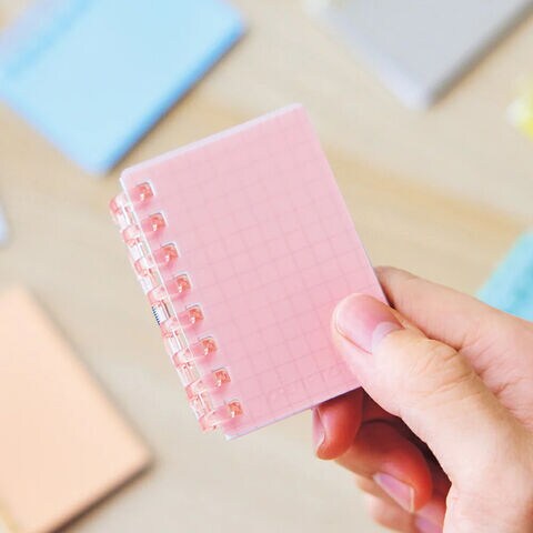 サイズは一般的なメモサイズよりも小さく、リーフは罫線にとらわれず自由に書きこめる方眼罫。