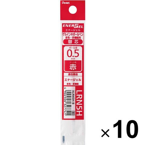 ぺんてる エナージェル 多色・多機能用 ボールペン替芯 XLRN5H 0.5mm 赤 10個セット