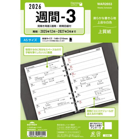 レイメイ藤井 2026年 システム手帳 リフィル キーワード A5 週間 - 3見開き両面2週間