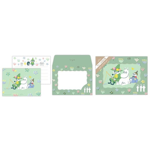 【1000円以上お買い上げで送料無料♪】ムーミン ミニレターセット Let's have a Happy Journey 冒険へ出かけよう グリーン スナフキン 便箋 封筒 かわいい - メール便発送