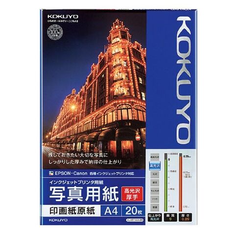 コクヨ IJP用写真用紙 印画紙原紙 高光沢・厚手A4 20枚 [KJ-D11A4-20]