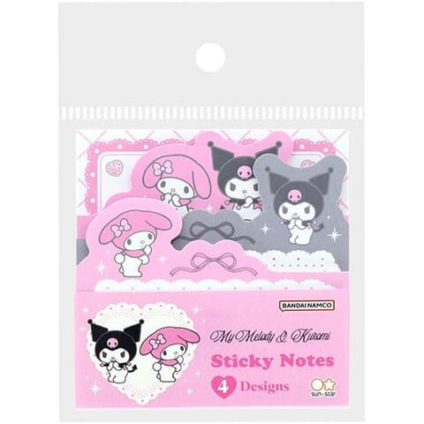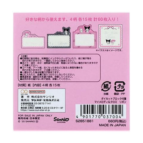 【1000円以上お買い上げで送料無料♪】マイメロディ&クロミ ダイカットブロック付箋 リボン 4柄×各15枚 ピンク ハート 周年 人気 かわいい サンスター文具 - メール便発送