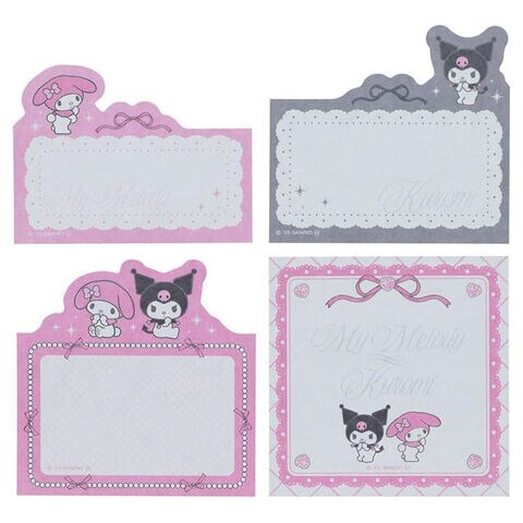 マイメロディ&クロミ ダイカットブロック付箋 リボン 4柄×各15枚 ピンク ハート 周年 人気 かわいい サンスター文具