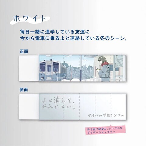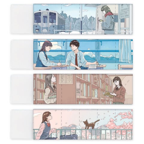 【1000円以上お買い上げで送料無料♪】【4柄セット】 アオハル 学校ケシゴム 消しゴム スリム 青春 春夏秋冬 エモい イラスト ミシン目入スリーブ かわいい クツワ - メール便発送