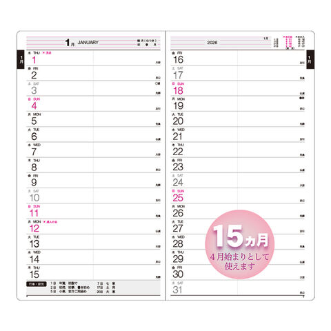 見開き1ヶ月タイプ15ヶ月版