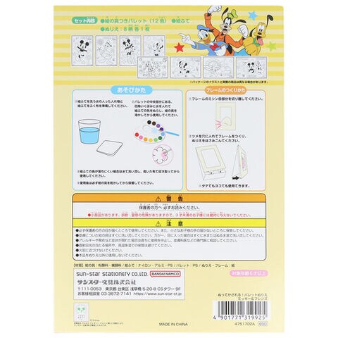 【1000円以上お買い上げで送料無料♪】ミッキー&フレンズ ぬってかざれる!パレットぬりえ 塗り絵 水彩 絵の具/12色 筆 フレーム付 ミニー サンスター文具 - メール便発送