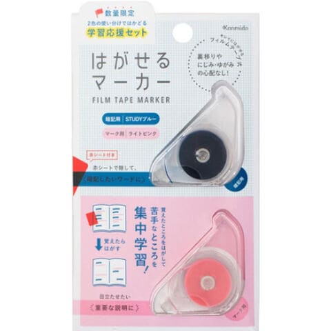 はがせるマーカー 限定 学習応援セット 赤シート付 STUDYブルー・COLORライトピンク フィルムテープ式 暗記 勉強