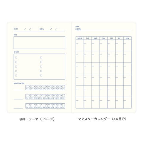 目標・テーマ(3頁)、マンスリーカレンダー(3ヵ月分)