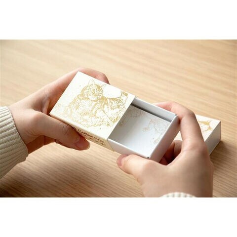 【1000円以上お買い上げで送料無料♪】メモ入りミニBOX キャットアートコレクション アイボリー 50枚入 箱 箔押し 猫 ねこ ネコ ROKKAKU×365Cat.Art かわいい - メール便発送