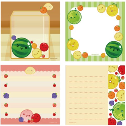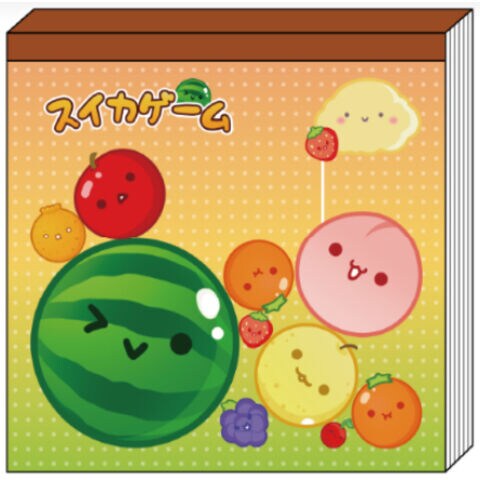 【1000円以上お買い上げで送料無料♪】スイカゲーム スクエアメモ A柄 9.5×9.5cm 4柄×各25枚 PET表紙 人気 ゲーム フルーツ かわいい 日本製 サンスター文具 - メール便発送