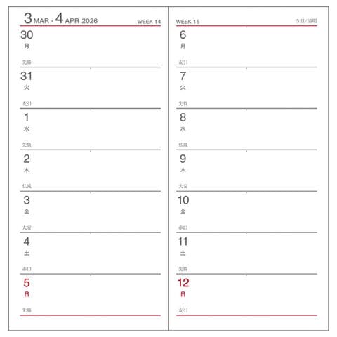 【レイアウト】見開き2週間 ウィークリー 週間 2W