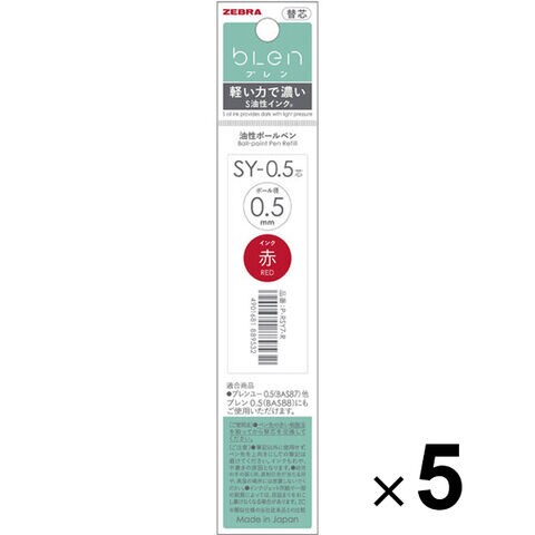 【1000円以上お買い上げで送料無料♪】【5本セット】 油性ボールペン 替芯 bLen ブレン 0.5mm 赤インク SY-0.5 U ユー 濃く書ける ゼブラ - メール便発送