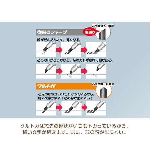 芯が回ってトガりつづける、三菱鉛筆のシャープペン「クルトガ」シリーズ。