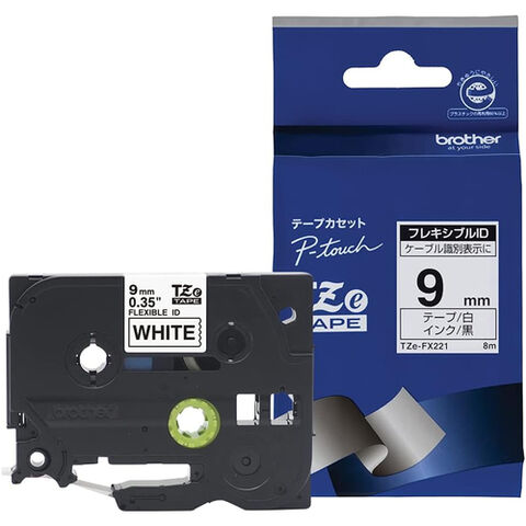 ブラザー工業 ピータッチ用 フレキシブルIDテープ 白地に黒文字 9mm幅 8m TZe-FX221