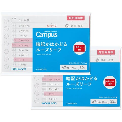 コクヨ Campus キャンパス 暗記がはかどるルーズリーフ A7サイズ 赤色シート付き 2冊セット