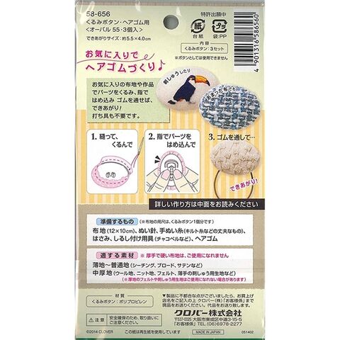 くるみボタン ヘアゴム用 オーバル55 3個入 アクセサリー パーツ クロバー