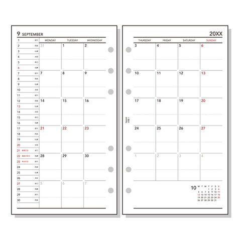 【レイアウト】見開き両面1ヵ月ブロック式 マンスリー 月間 ブロック