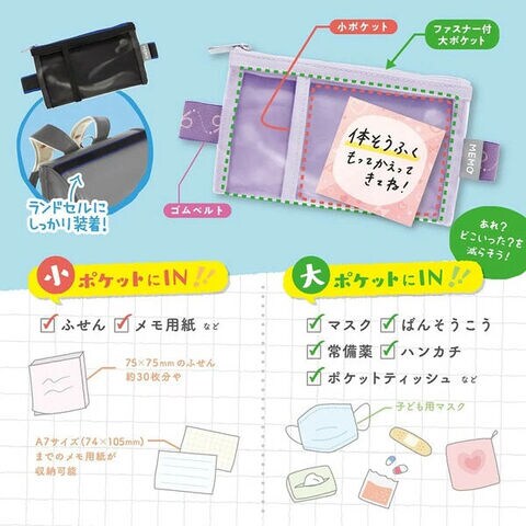 ランドセルのかぶせ部分に装着する「メモポケット」です。