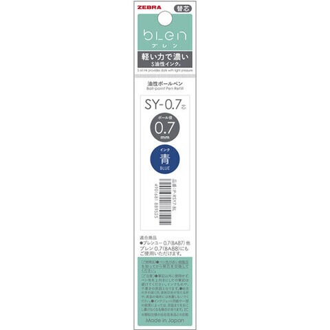 【1000円以上お買い上げで送料無料♪】油性ボールペン 替芯 bLen ブレン 0.7mm 青インク 1本 SY-0.7 U ユー 濃く書ける ゼブラ - メール便発送