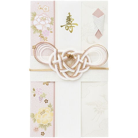 【1000円以上お買い上げで送料無料♪】しらら金封 桃 祝儀袋 金箔 パール箔 水引 中袋 短冊 お名前書き方ガイド付 白無垢 結婚 上品 華やか マルアイ - メール便発送