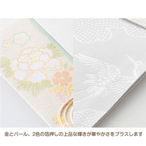金とパール2色の箔押しの上品な輝きが、華やかさをプラスします。