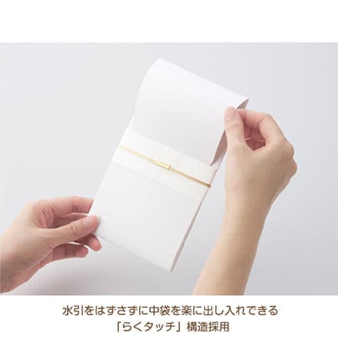 水引を外さずに中袋を楽に出し入れできる「らくタッチ」構造採用。