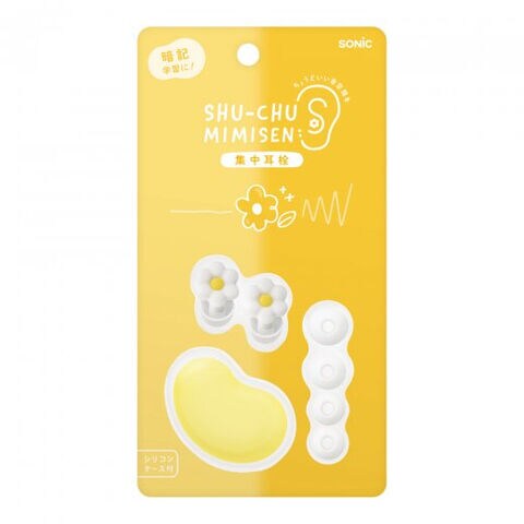 お花の集中耳栓 ケース付 シリコンタイプ ホワイト 1ペア入 イヤーピース 3サイズ 携帯 遮音 暗記学習 受験 勉強 集中 ソニック