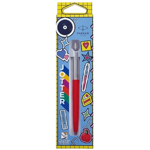 【送料無料】限定 PARKER ジョッター オリジナル 平成レトロ ボールペン スカーレットレッド 油性 黒インク ステンレス製 矢羽クリップ - メール便発送