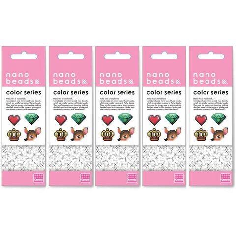 人気のアイロンビーズに大人が楽しめるミニサイズシリーズが登場です。ナノビーズは1ピースのサイズがパーラービーズの約4分の1のサイズ(φ2.6mm×H2.8mm)。よりリアルで細かなビーズアートが作れます。本商品は単色シリーズのホワイト5セット商品となります。【付属品】ナノビーズ 1000pcs*小部品がありますので、3歳未満のお子様には与えないでください。