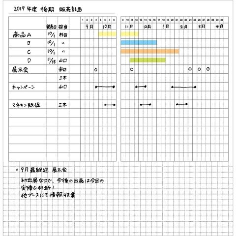 月間スケジュールを「インデックス」として、バレットジャーナルにも使える「ガントチャート」です。