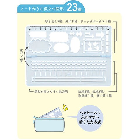 見やすいノートが作れるテンプレート ピンク 吹き出し 矢印 チェックボックス 波線 定規 折りたたみ式 HiLiNE クツワ