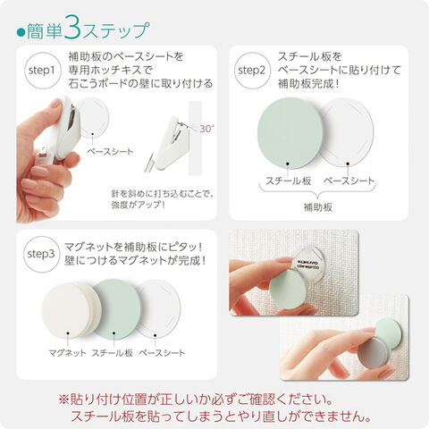 マグネット・補助板・ホッチキスがセットになった壁につけるマグネットの「はじめてセット」です。