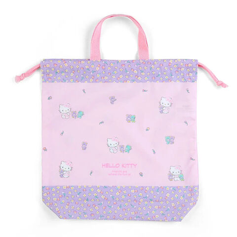 ハローキティ 持ち手付き巾着 花 名前スペース付 体操服袋 サブバッグ 通園 通学 かわいい 日本製 サンリオ