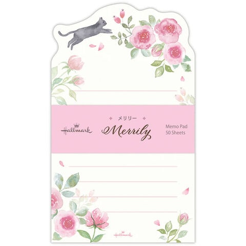 ダイカットメモパッド Merrily メリリー なかにしいずみ ピンク 50枚 バラ ローズ 猫 ボタニカル ナチュラル 春夏