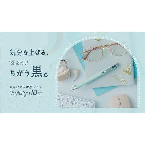 自分の黒が入った、水性3色ボールペン「ボールサイン iD 3C」。
