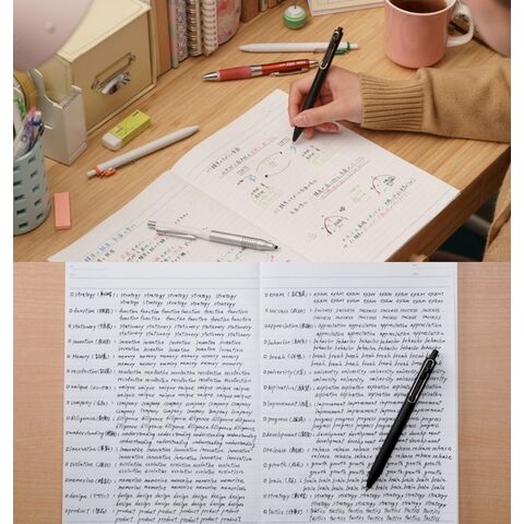 新開発uni-ball oneインクは、色材の紙繊維への浸透を極限まで抑え、色材本来の発色、黒は濃く、カラーは鮮やかに発色します。ノートやメモを見返したときに、「くっきり」と主張するインク描線が特徴です。