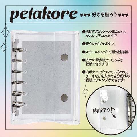 ペタコレ 透明シール帳 02/レインボーラメ M6サイズ 6穴 クリアリフィル付 バインダー かわいい 共栄プラスチック