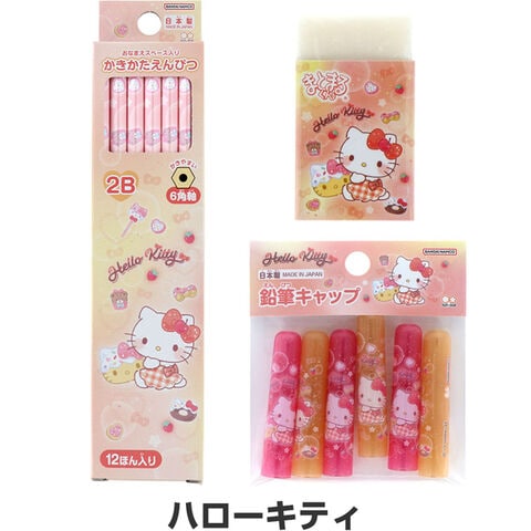 【送料無料】【文具3点セット】 ハローキティ 鉛筆2B/消しゴム/キャップ 簡易ラッピング 2026年モデル 卒園 入学 お祝い - メール便発送