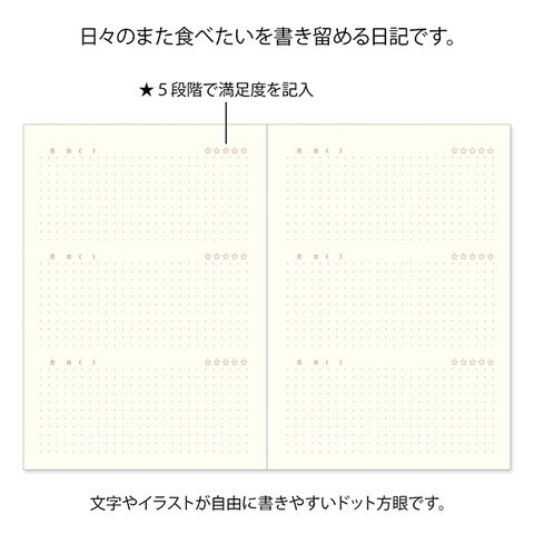 日記 おいしい A5 1ページ3日 レシピ 料理 店 レストラン カフェ 星 ログ 記録 MD用紙 ウサギ シンプル ミドリ