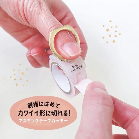 【1000円以上お買い上げで送料無料♪】マスキングテープカッター リボンボンリング 2Way ねこ/ストレート 15~20mm幅 飾り切り 親指装着 手帳 デコ クツワ - メール便発送