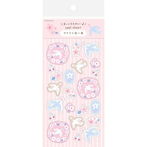 【1000円以上お買い上げで送料無料♪】限定 シールシート サクラと白い鳥 和紙 マステ素材 桜 花 春 手帳 デコ 上品 かわいい 古川紙工 - メール便発送