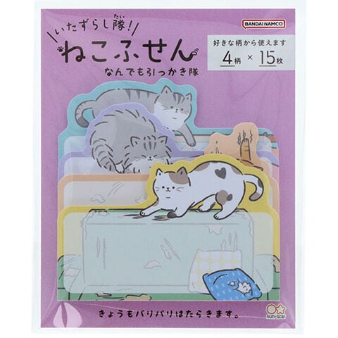 いたずらし隊!ねこふせん なんでも引っかき隊 4柄×各15枚 猫 ネコ にゃんこ 付箋 ダイカット かわいい サンスター文具