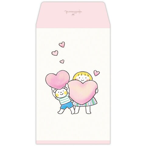 【1000円以上お買い上げで送料無料♪】仲良しともだち メモ付きポチ袋 ハート 各3枚入 三つ折り 多目的 お年玉 はるちゃんとふうくん LINEスタンプ かわいい - メール便発送