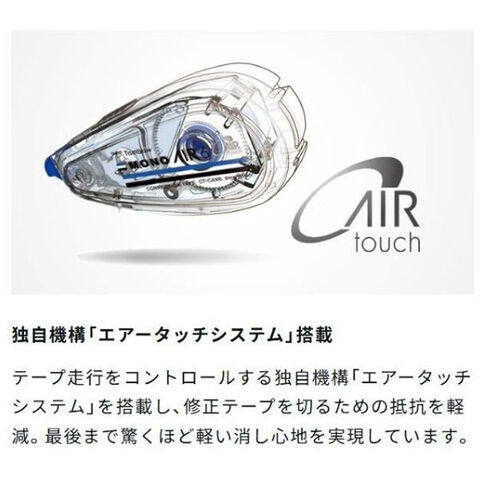 小型でたっぷり10m巻の実用派、タテ引き修正テープ「MONO AIR (モノ エアー)」です。