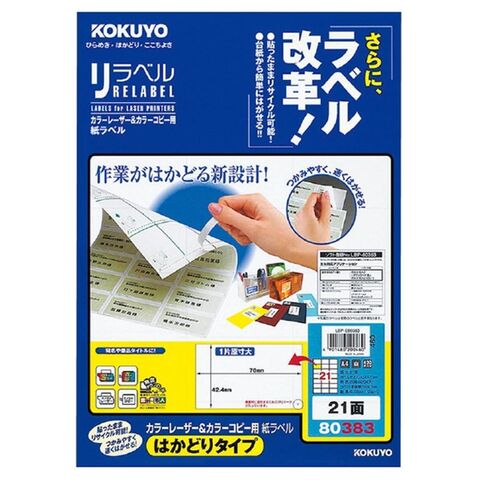 コクヨ カラーLBP&コピー用紙ラベル「リラベル」はかどり21面20枚 [LBP-E80383]