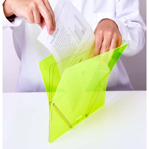 A4サイズの資料を中に挟んでゴムでとめるだけで、簡単に収納できます。
